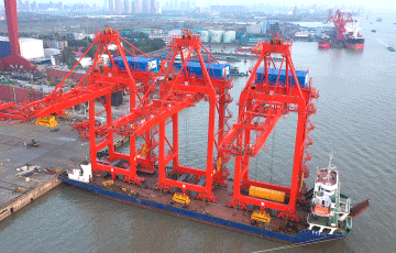 精锐出港,扬帆远航!开云电竞远控自动化岸桥发运浙石化鱼山岛!