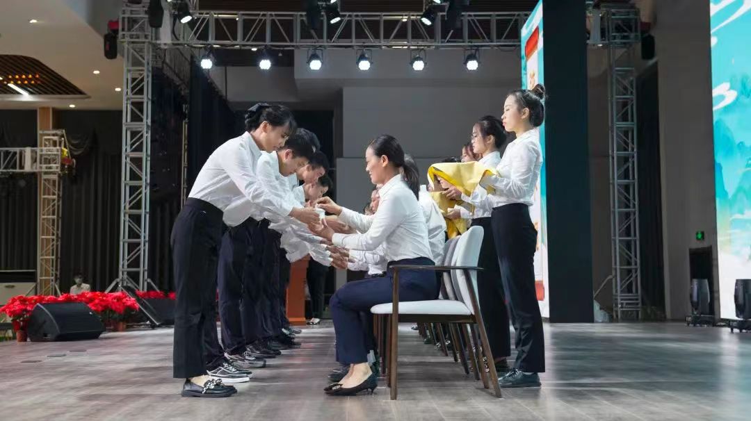 拜师:仪式短暂却庄严,将见证一对对师徒携手走过接下来的开云电竞旅程,于充实的工作中收获浓浓师徒情谊。