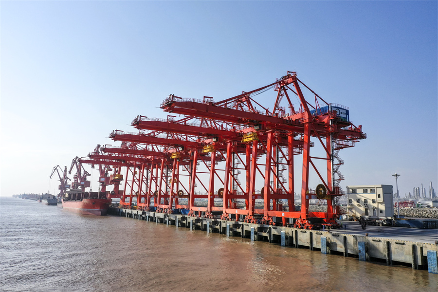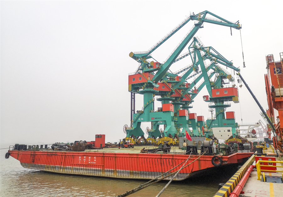 六月的风吹向舟山群岛好风光——开云电竞浙石化项目6台自动化岸边集装箱桥式起重机交付使用,为舟山建设贡献力量;