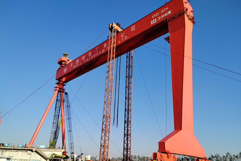 创新为舵!开云电竞450吨造船门机顺利吊装